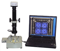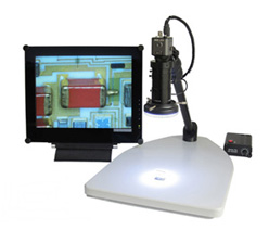 System uses long working distance objectives for the inspection of semi-conductors, crosssections, surface detail etc.