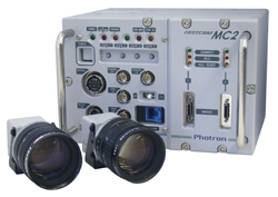The Fastcam MC-2 is Photron's latest high speed camera for production line fault finding and has a small camera head for operation in confined spaces and at awkward angles. It comes supplied with Photron's easy to use software allowing engineers to optimise productivity and efficiency. The Gigabit Ethernet connection enables fast transfer of video to computer. Camera heads can be colour or monochrome and optional tracking software enables research engineers to analyse and record component movement. Record with one or two camera heads. Small camera head  |